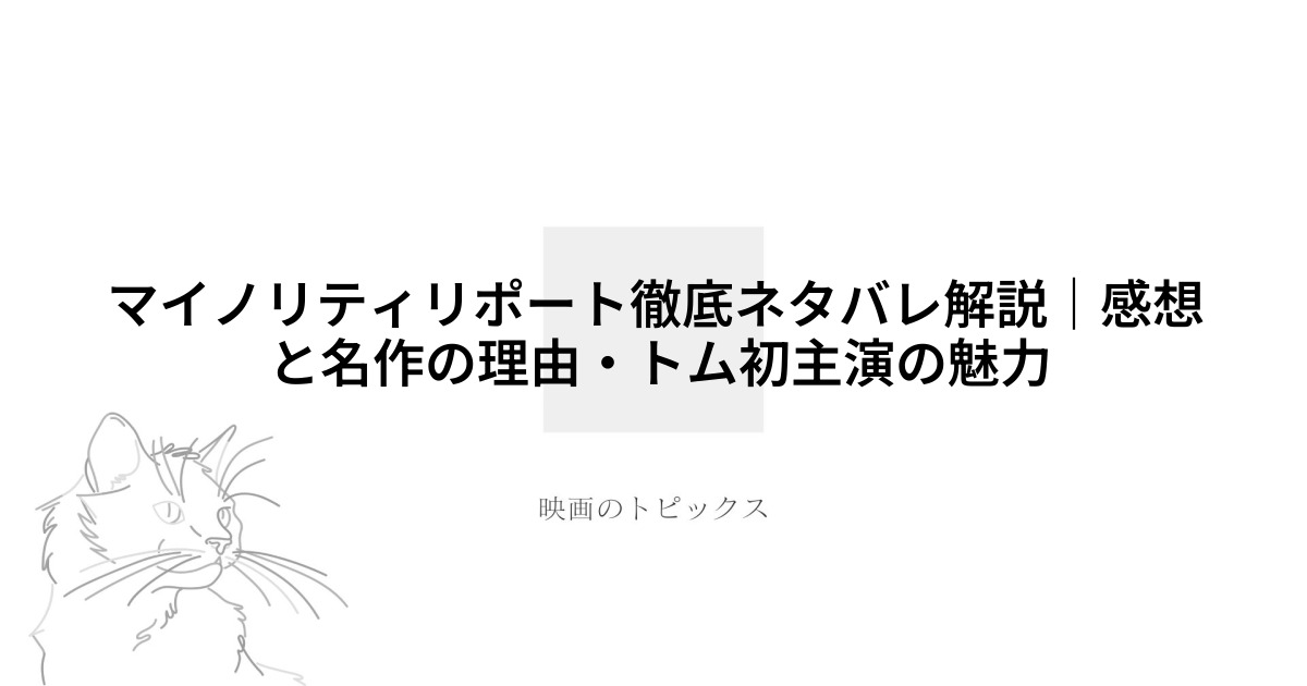 『マイノリティリポート』を徹底解説!スティーヴン・スピルバーグ監督とトム・クルーズ主演による近未来SFの名作『マイノリティ・リポート』。犯罪が予知される社会で起こるサスペンスと人間ドラマ、驚きの結末まで、映画をもっと深く味わいたい方に向けて、ストーリーや登場人物、見どころ、考察ポイントまで詳しくご紹介します。ネタバレを含む内容で、作品の魅力や時代を超えるメッセージ性を徹底レビューします。