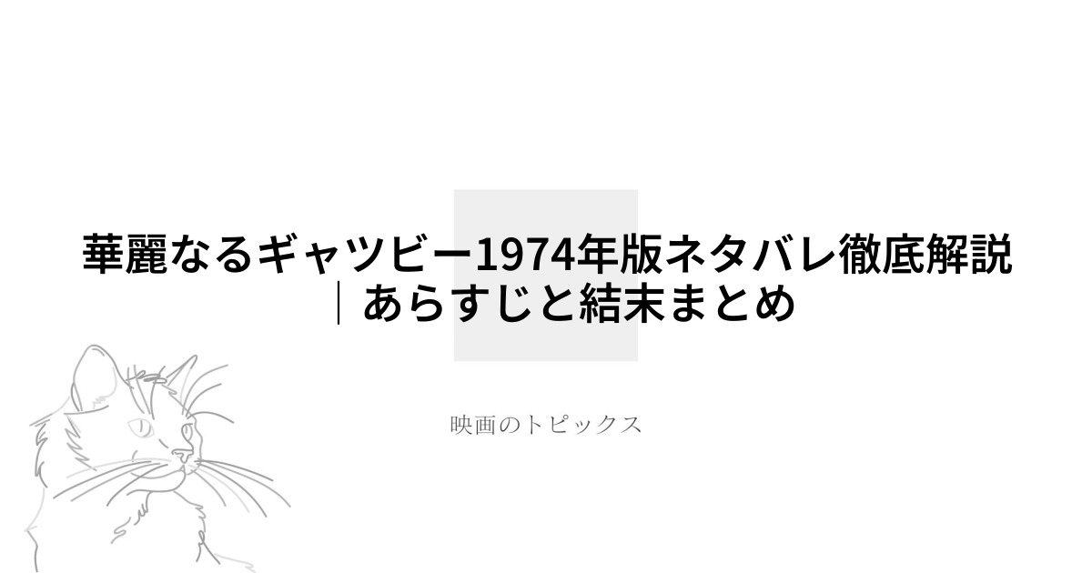 1920年代のアメリカを舞台に、華やかな時代の裏に潜む人間の欲望と愛の儚さを描いた不朽の名作『華麗なるギャツビー』。この記事では、「華麗なるギャツビー」という視点から、1974年版映画の詳細なあらすじや結末、魅力的なキャスト情報、そして本作をき... -
